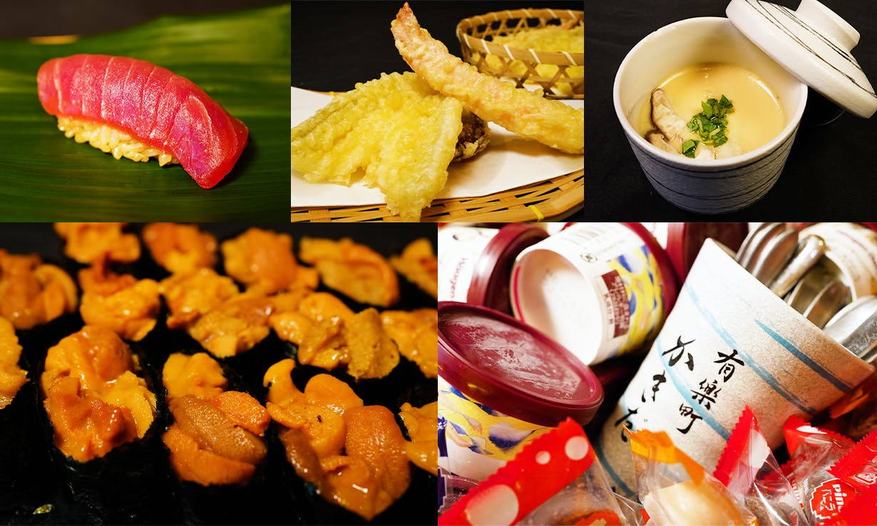 鮨15貫 天ぷら3種 おつまみ4種類 茶碗蒸し1つ 味噌汁 アイス