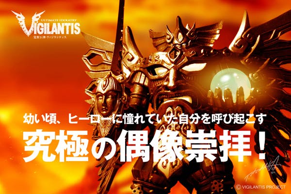 私が今回のプロジェクトのためにデザインした覚醒巨神ヴィジランティスは、アクションフィギュアではありません。あなたの心に火を点けるため、私が魂を込めてデザインした巨神像です。あなたが子どもの頃、ヒーローに憧れていたならばぜひ、覚醒巨神ヴィジランティスを手元に置いて、究極の偶像崇拝を体感してください。あなたの日常でのヒーロー魂を応援いたします。