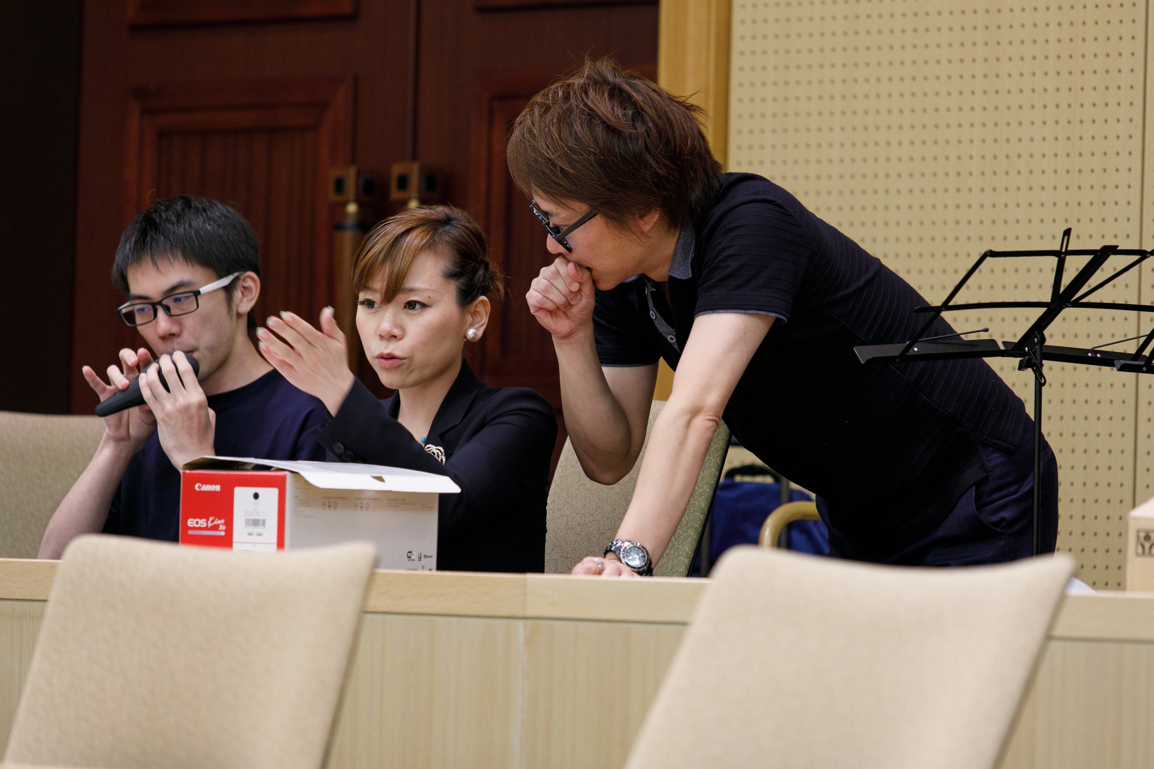 「若さ」20代~30代のアーティスト8名。しかも全員「音大卒」これだけでも今までのオカリナ業界では初だと思います。しかしさらにエッセンスを加えれば最強になるなと思い考えたのは、あくまでステージで演奏するのはオカリナを軸として各々が音大で培った楽器も演奏することです。若いアーティスト8名がオカリナという癒しのアンサンブルに西洋楽器の持つ伝統を加える。この3つが融合すれば革新的グループ、革新的なステージになるに違いない。そう考えました。(下記2枚の写真は会議の様子です)