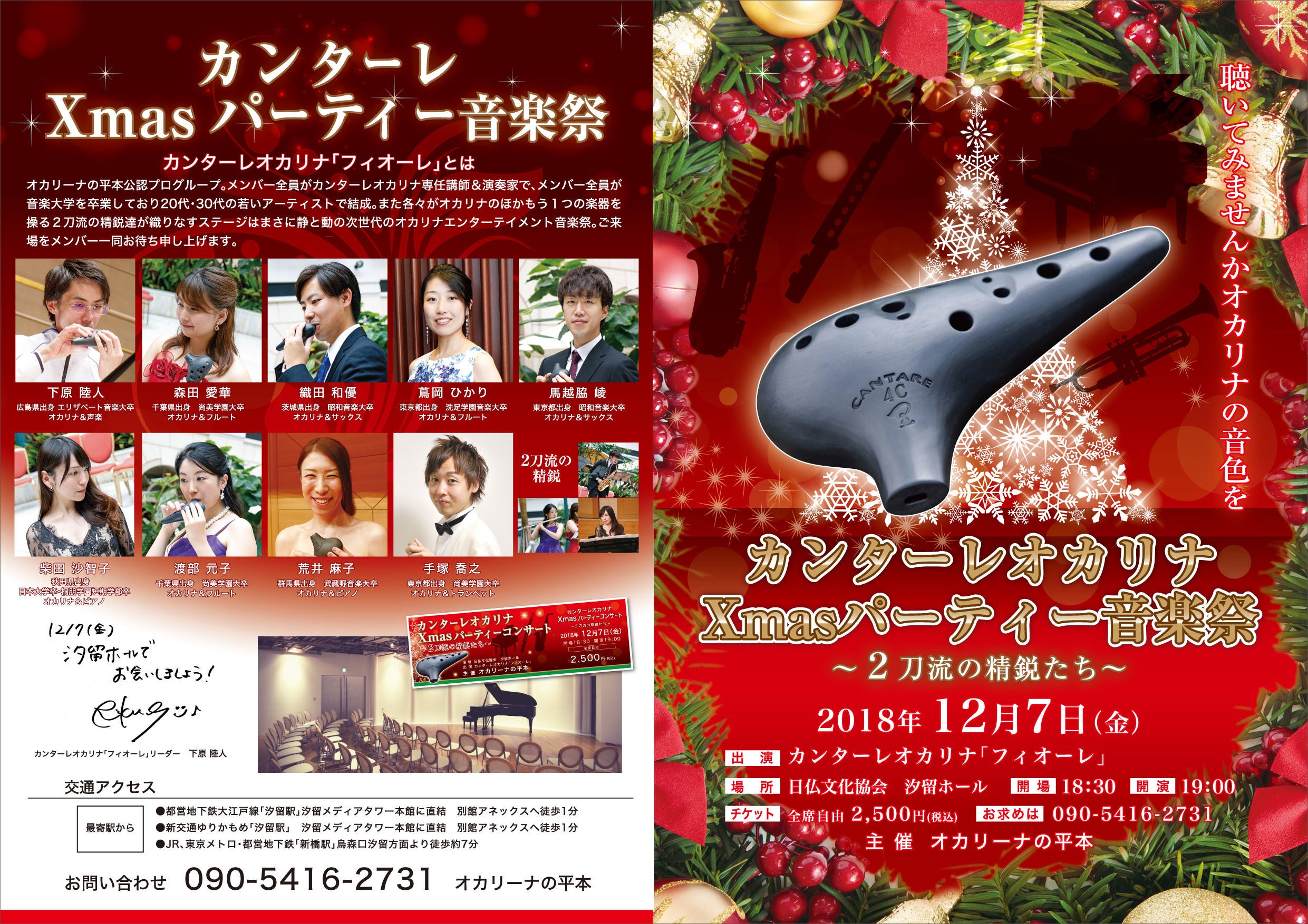 今回年末は12月7日(金)の東京港区汐留ホールにてカンターレオカリナ「フィオーレ」Xmasコンサート公演を開催いたします。すでにホール代金は何とか入金しまして開催は決定いたしております。そのコンサートでより多くのオーディエンスに初コンサートを聴いていただきたく、リターンではチケットをプレゼントしオリジナル楽譜もプレゼントさせていただきます。その中でフライヤー代金・プログラム代金・これからのコンサートの運営費にあてさせていただきます。