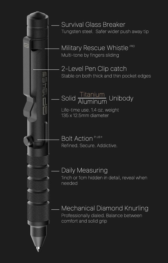 ペンの末端に、超コンパクトなタングステン鋼ガラスブレイカーを搭載。
