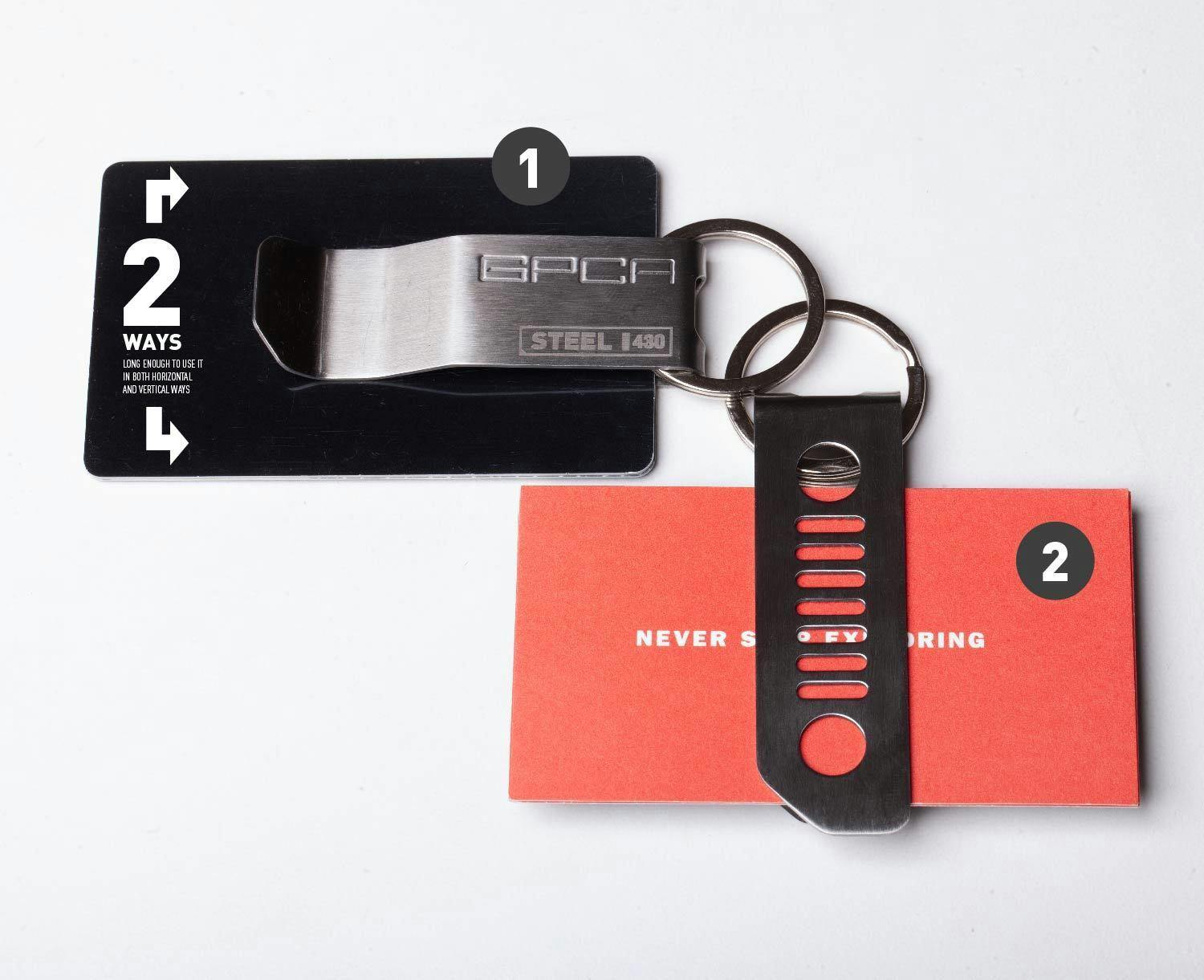 マルチホルダー、キークリップ、マネークリップ、ベルトクリップとしてGP1945とテイストを揃えられます。