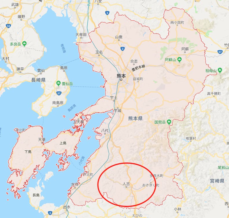 私は、熊本県の球磨(くま)地方にある、人吉(ひとよし)市というところで生まれ育ちました。