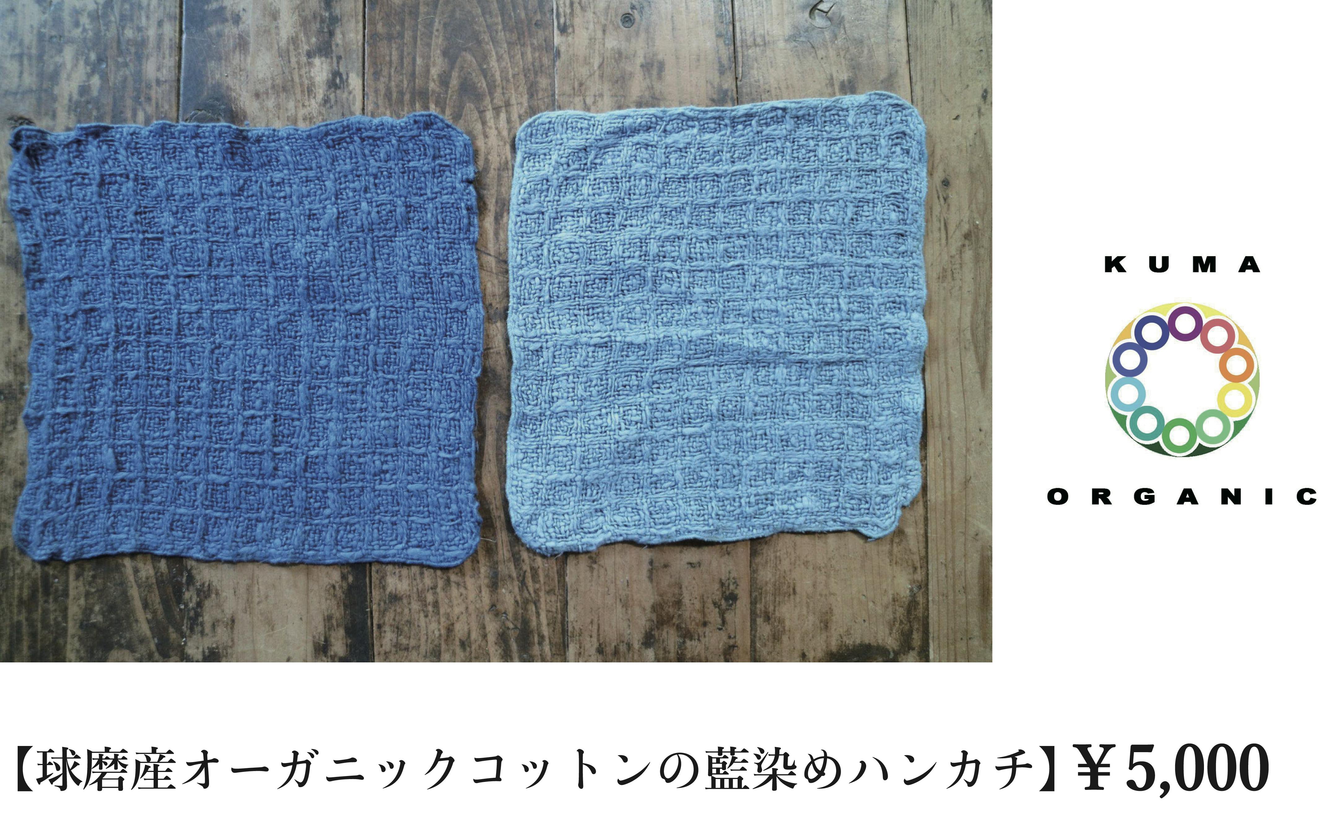 あさぎり町で生産、加工されたオーガニックコットンのハンカチを藍染めに仕上げました。